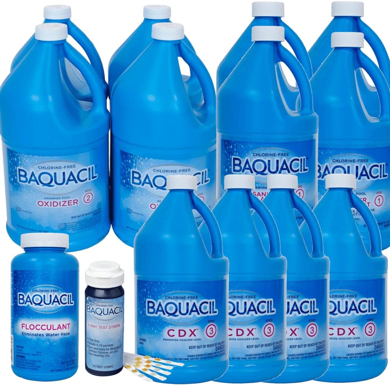 The Baquacil CDX Package deal up to 10,000 Gallons is based on 4 months chemical usage for regular use of the swimming pool. More or less of Oxidizer or Sanitizer may be needed depending on usage and enviornment.