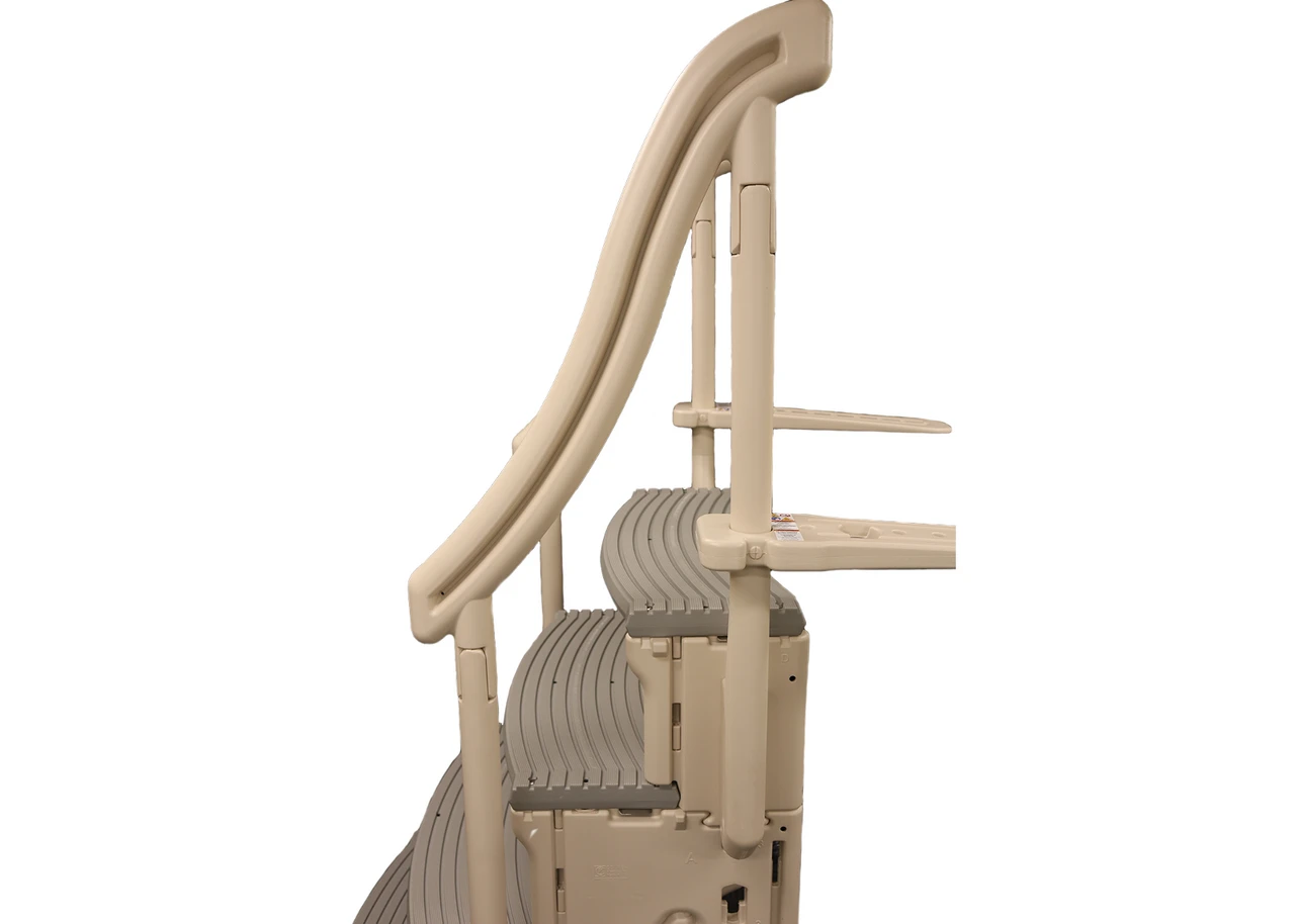 - Two-Tone Color: Grey treads with warm gray sidewalls and handrails match any pool decor.