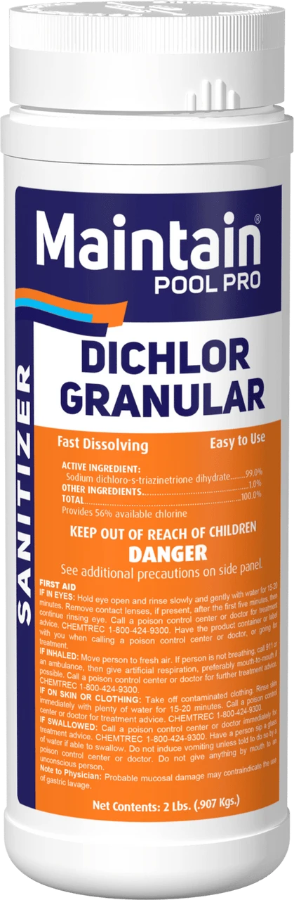 - 2 lb. container of sodium di-chlor granular