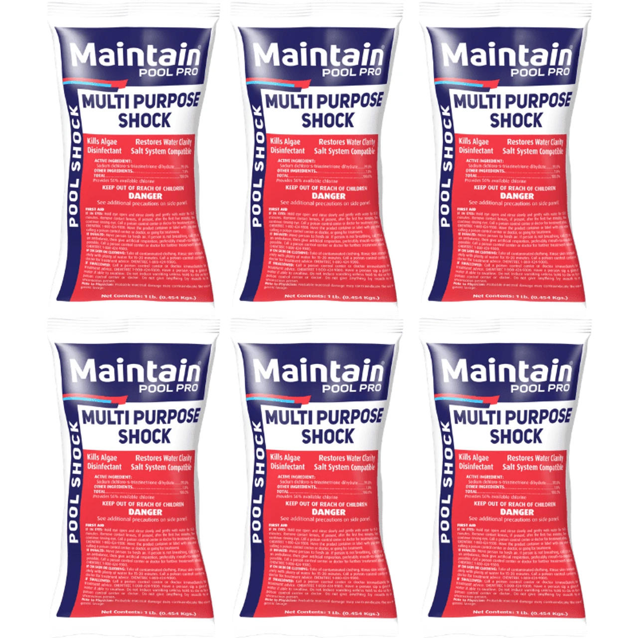 Dosage: 1lb per 10,000 gallons water for shock treatment, more if algae is present.