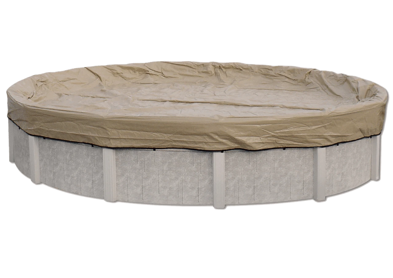 - The Elite pool cover is made 4′ larger than your pool. This makes it easier to secure your winter pool cover onto your above ground pool.