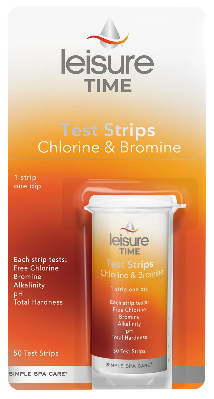Leisure Time Chlorine and Bromine Test Strips – your go-to solution for maintaining a perfectly balanced water environment. These easy-to-read strips offer comprehensive testing for pH, alkalinity, calcium hardness, chlorine, and bromine levels.