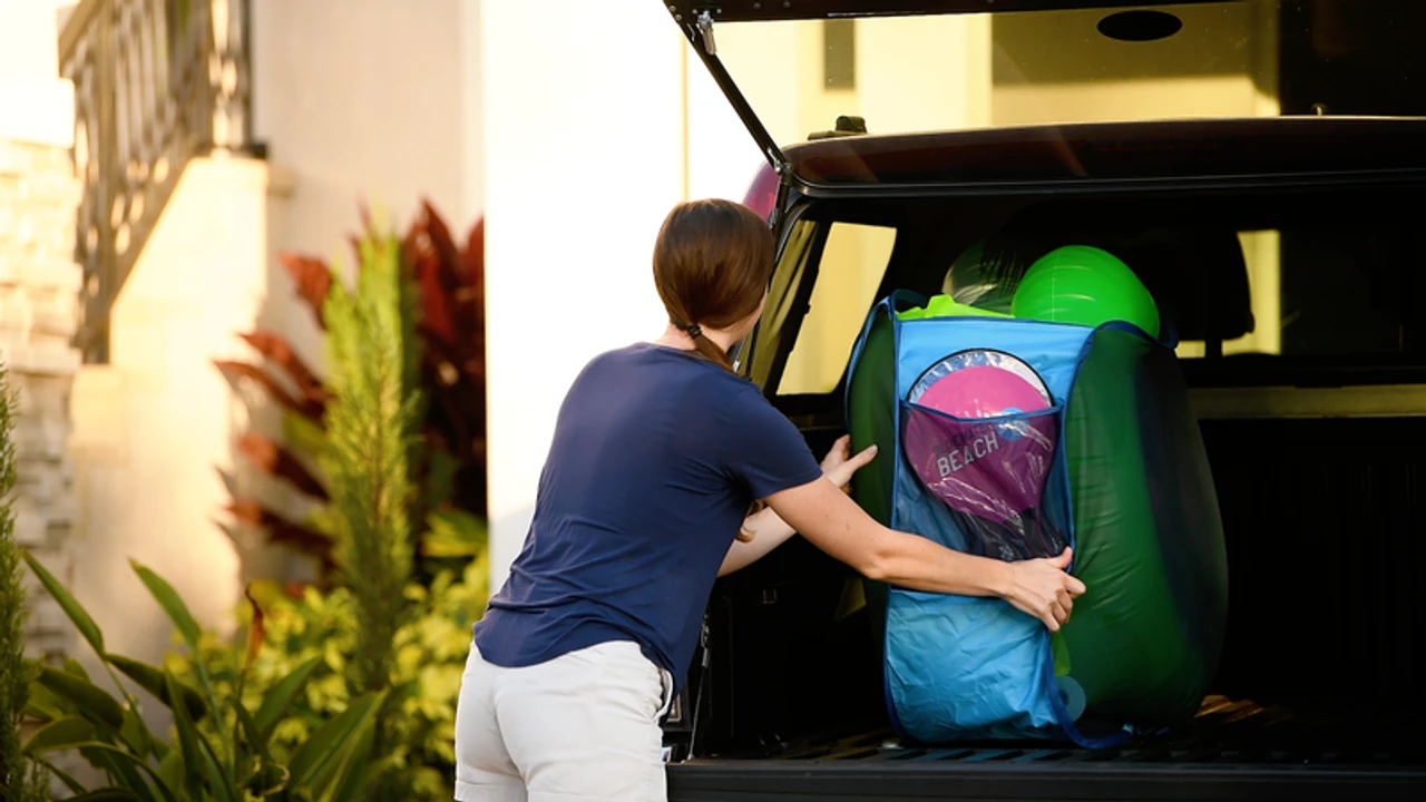The Pool Pouch stores all pool, patio & backyard toys & accessories!