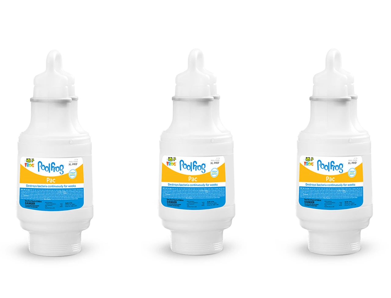 Pool Frog PAC 540C fits the Frog XL Pro Chlorinator. The drop-in chlorine insert that allows the XL Pro system to slowly and steadily release the necessary amoount of Chlorine. 3 of the Pool Frog #540 7lbs chlorine cartridges for the Pool Frog XL Pro, New Water Cycler #400, #407C.