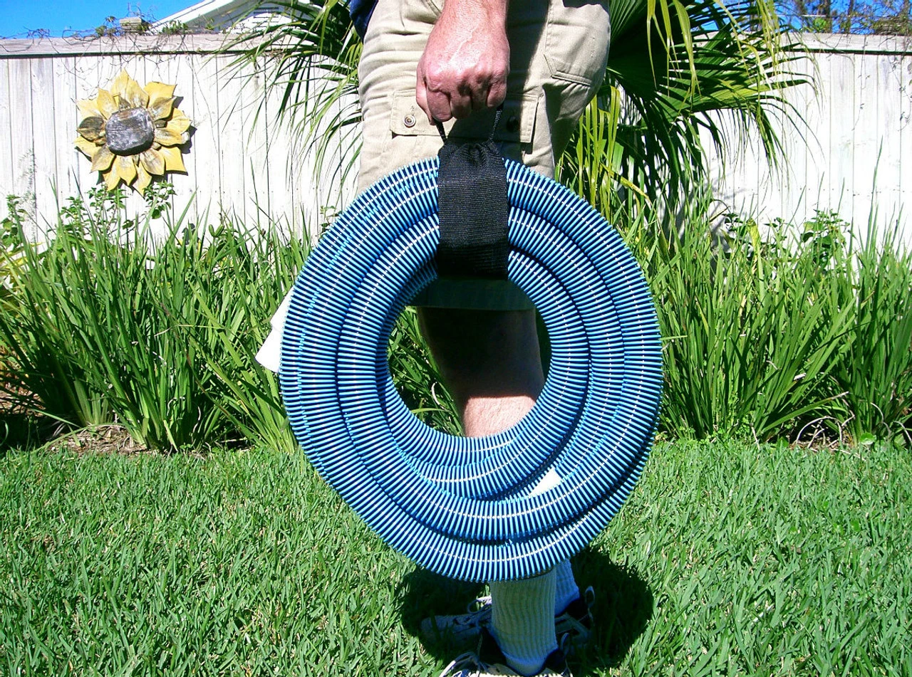 Easily hang or carry your pool vacuum hoses, garden hoses, electrical cords, ropes, and more. Features a heavy duty hook and loop closure with a convenient carry handle. (hose not included)