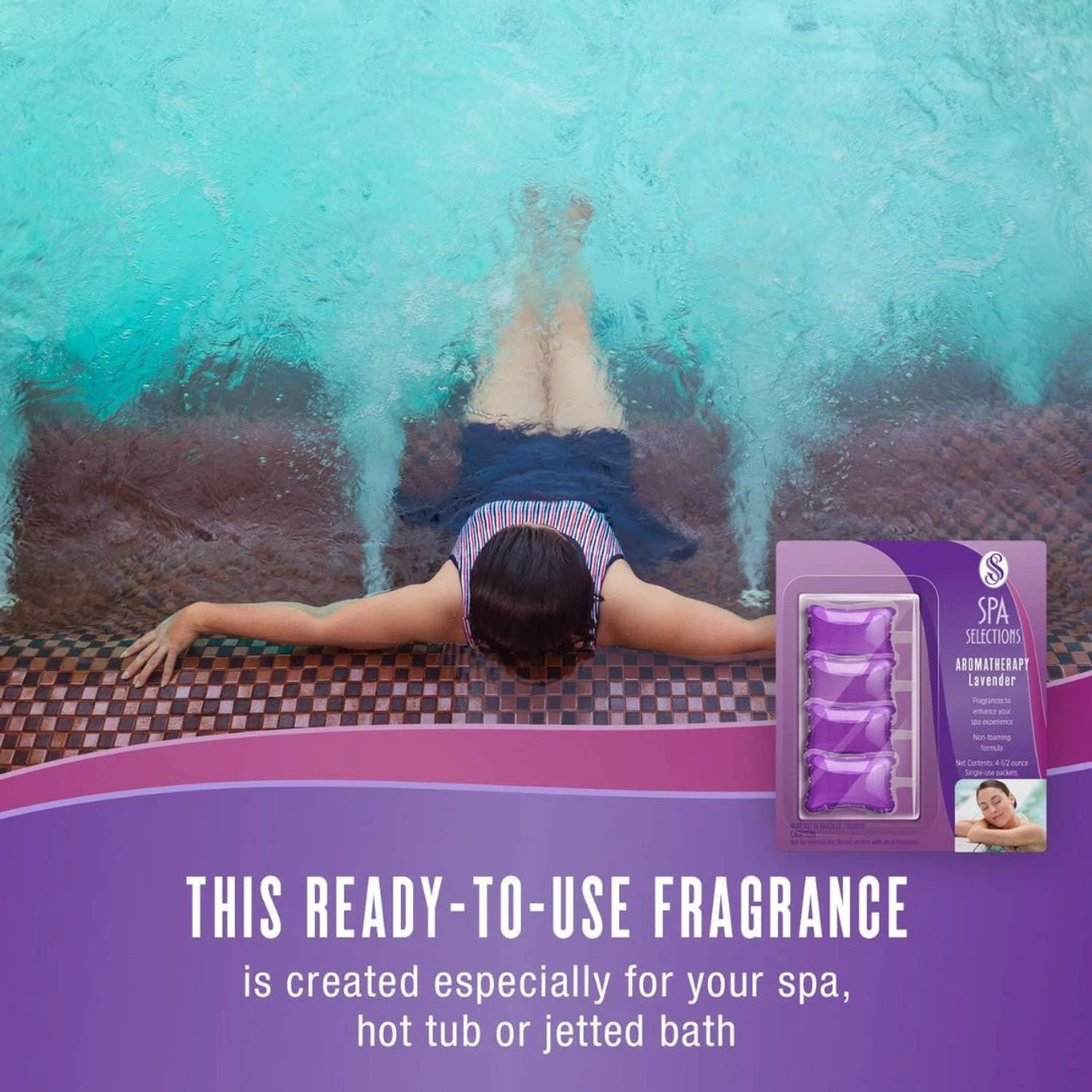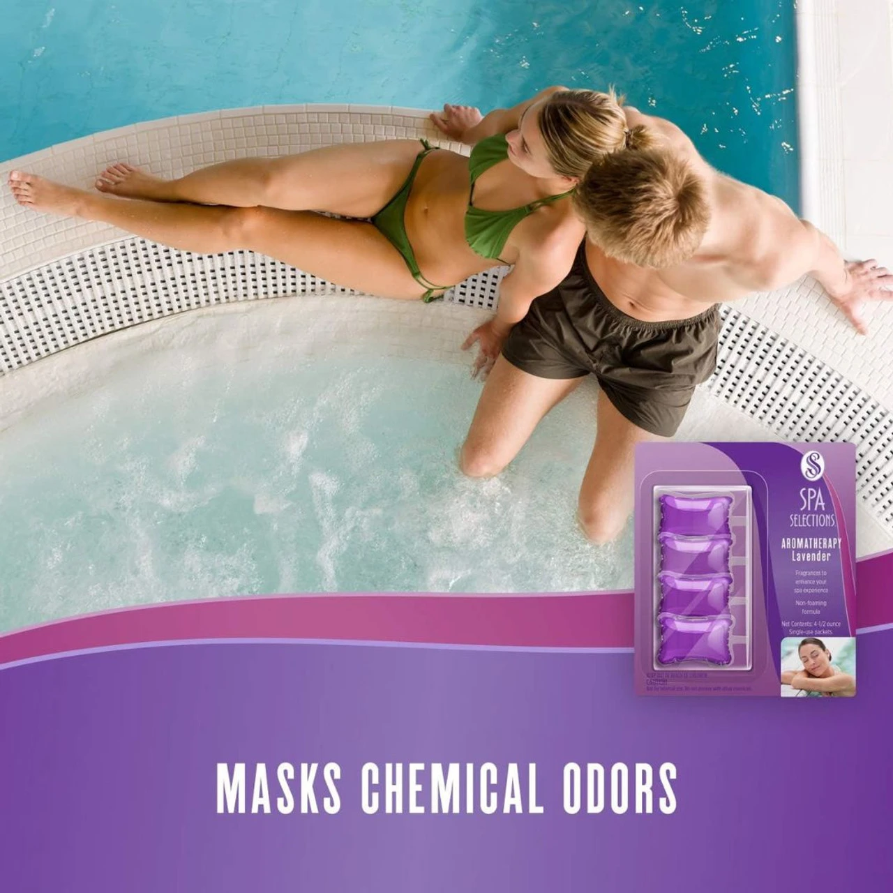 Spa Selections Aromatherapy Pillow Packs offer a convenient blend of fragrances designed specifically for spas, hot tubs, and jetted baths. This alcohol-free and water-soluble formula effectively masks chemical odors without staining or harming surfaces like wood, fiberglass, acrylics, or plaster. Moreover, it won’t interfere with your filters or pH levels.