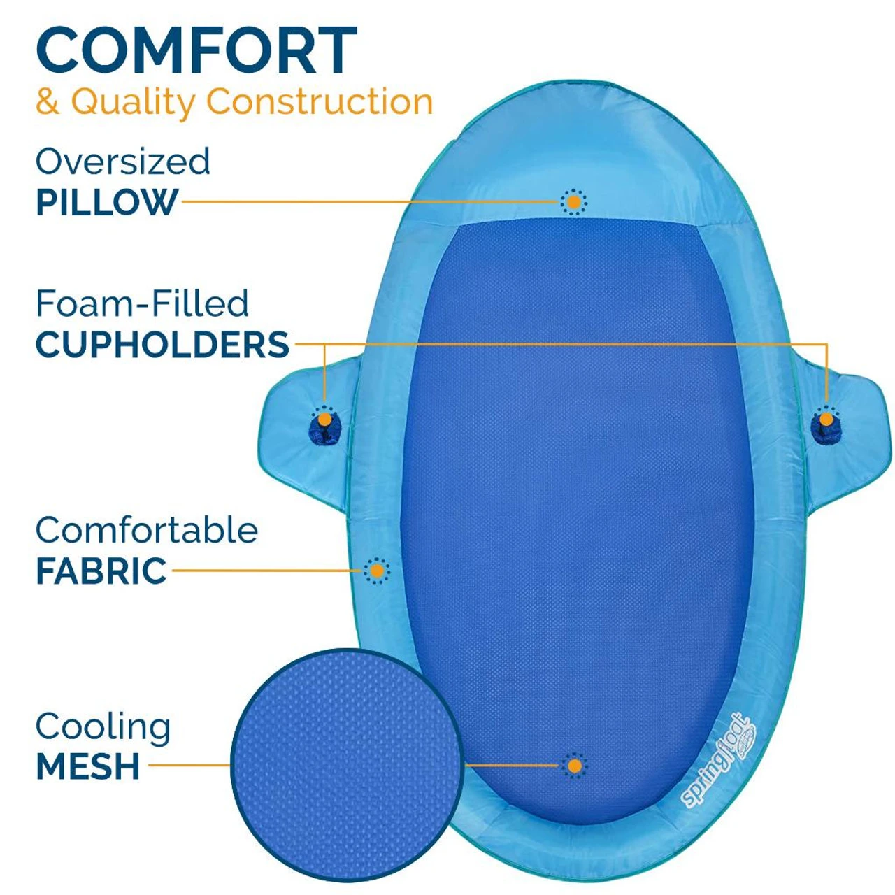 The hammock style bed features a soft cooling mesh that cradles your body just below the surface of the water, so you’ll stay nice and cool on hot summer days. Lay back and relax on the over-sized pillow as the hurry of everyday life drifts away and stash your favorite beverages in the two cup holders.