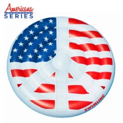 Showcase your patriotic spirit with the Swimline Americana Peace Sign Island. This massive inflatable pool float island is perfect for any occasion, featuring the American Flag adorned with a peace sign. Ideal for lounging, socializing, or simply enjoying the water, this eye-catching float brings a touch of peace and patriotism to your aquatic adventures. Relax in style and make a statement with the Swimline Americana Peace Sign Island!