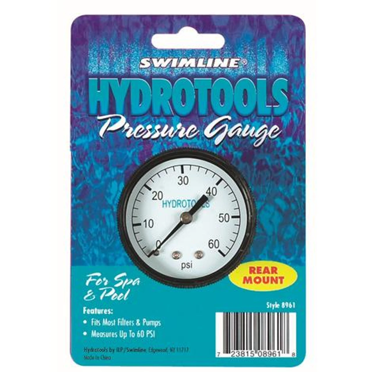 HydroTools by Swimline 8963 Rear Mount Pool Filter Pressure Gauge is designed to fit most filters and pumps, providing accurate pressure readings for effective monitoring of your pool filter system.