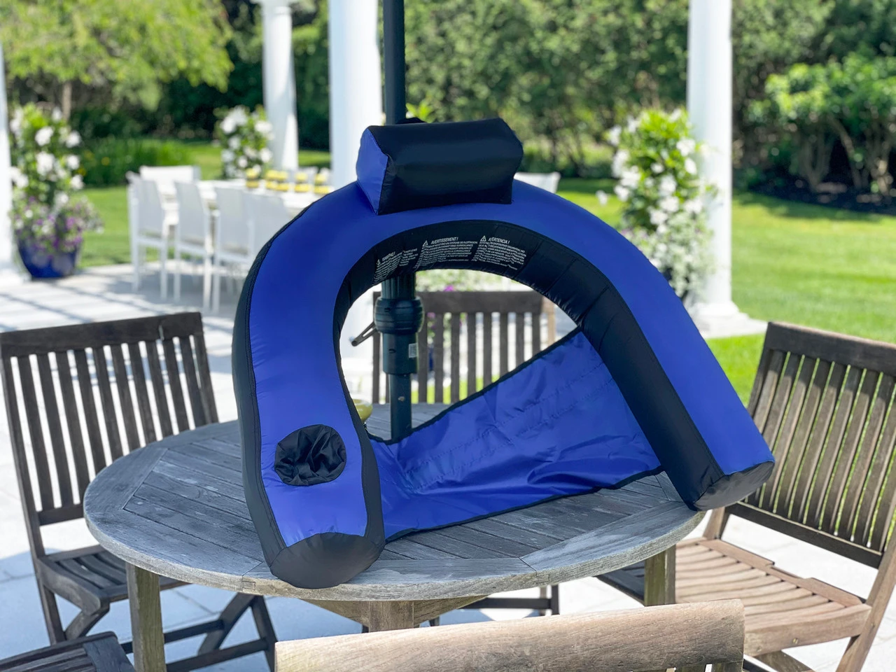 This inflatable pool lounger has comfortable Fabric Cover complete with head rest and drink holders. Compact when deflated for easy travel. Sit back and float around at the swimming pool or lake. Nylon Covered U-Seat with inflatable head rest and drink cup holders. Canvas strength nylon. Small and compact for traveling! Great for pools or at the beach!