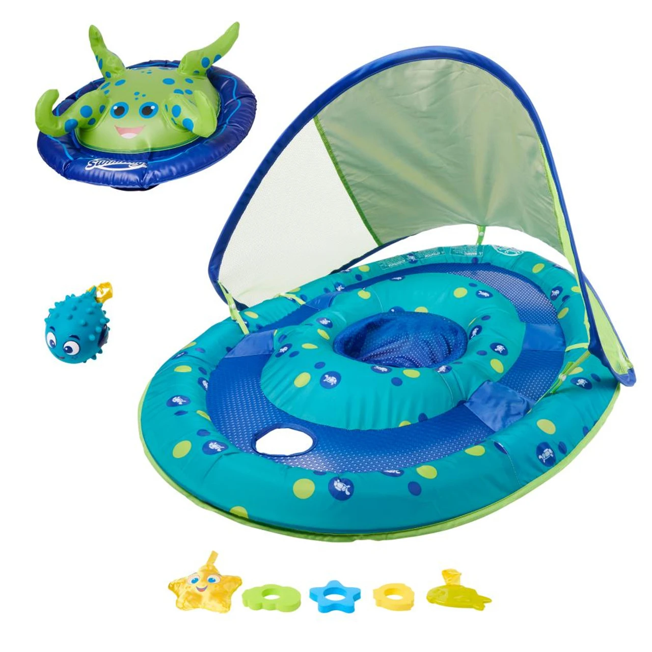 Introduce your baby to an engaging pool pal! Features: Three-position adjustable, removable canopy offering UV protection. Interactive play station with activities for every developmental stage.